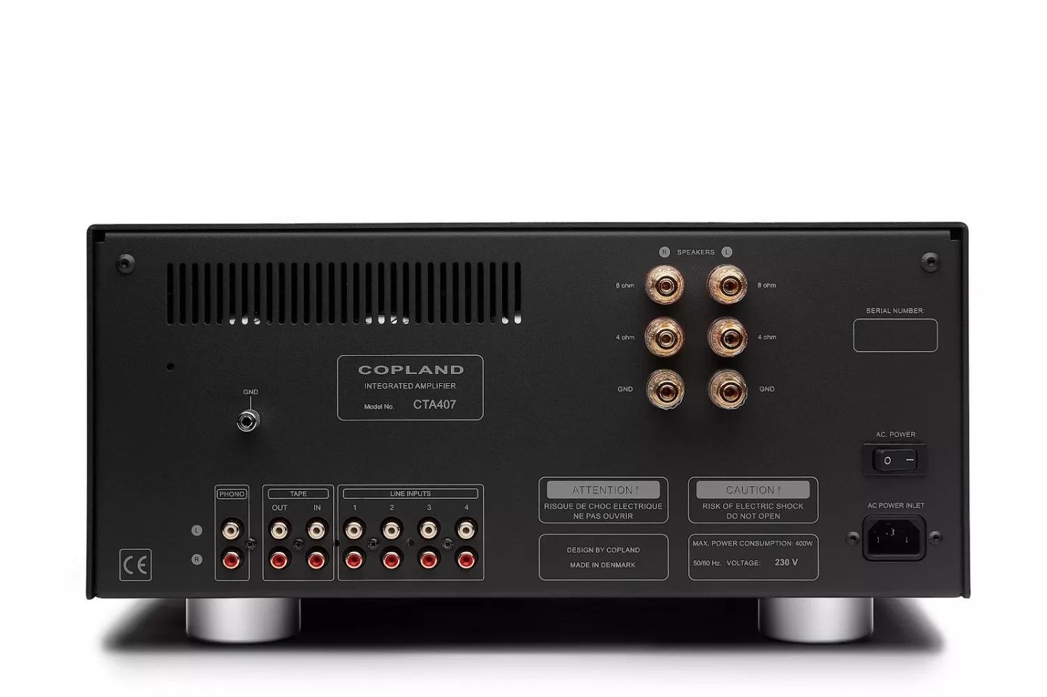 Förstärkaren erbjuder fem linjeingångar, inklusive bandmonitorslinga, samt en inbyggd RIAA-modul som hanterar både MM- och högpresterande MC-pickuper. CTA407 är en vidareutveckling av den uppskattade CTA405, som under mer än ett decennium haft en stark ställning bland audiofiler internationellt.