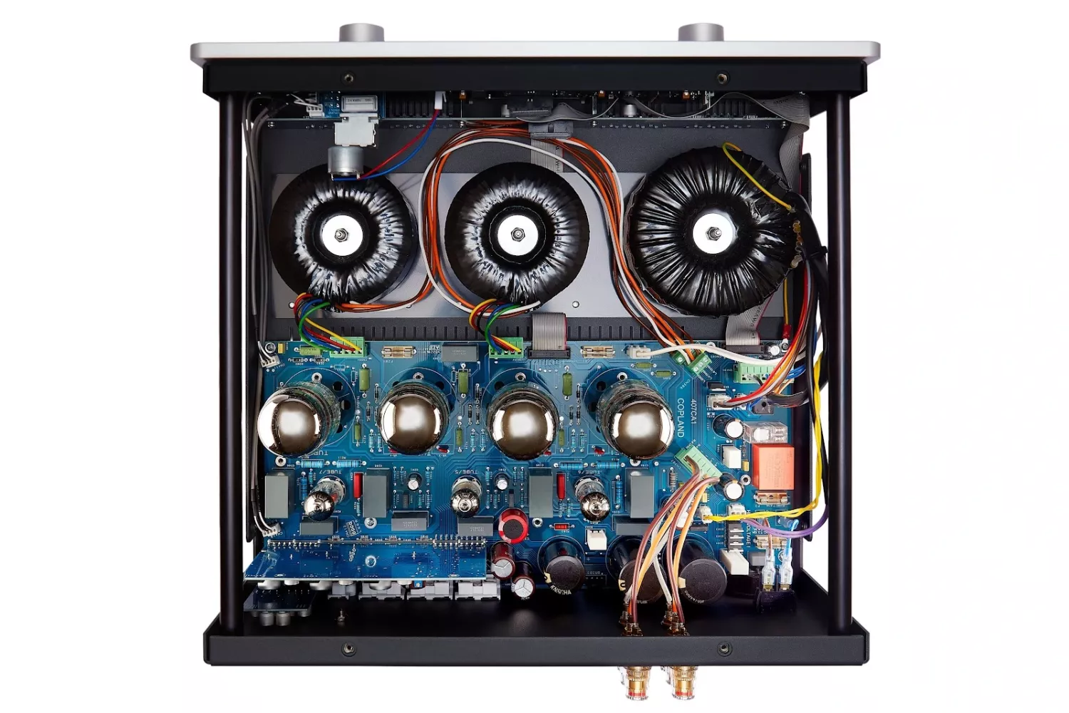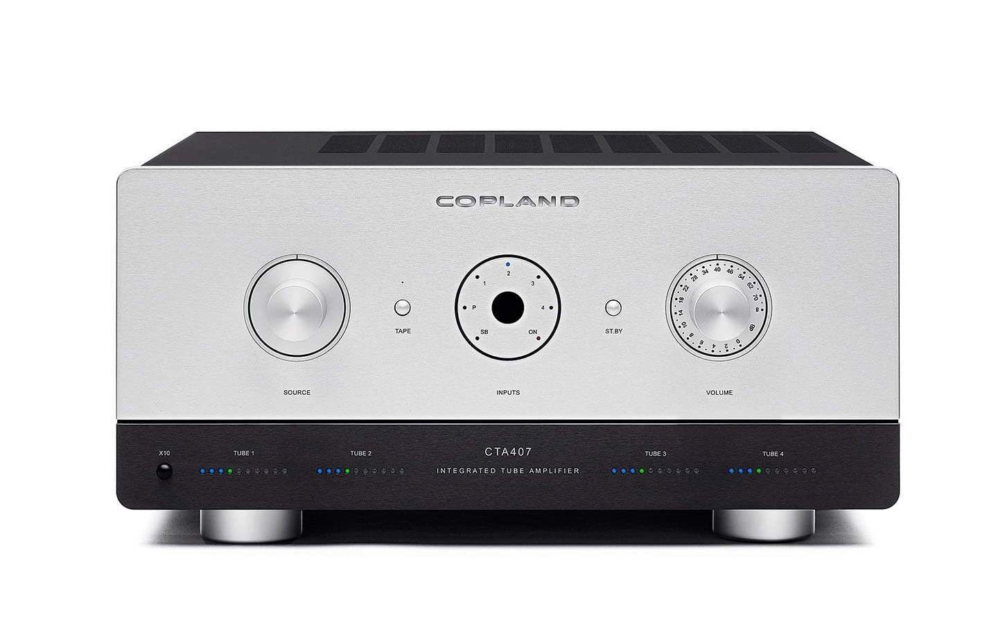 Copland-förstärkare kännetecknas ofta av en stramt elegant och nästan asketisk design. Med rörförstärkaren CTA407 har man dock valt att komplettera den visuella enkelheten med avancerad elektronik som aktivt optimerar och övervakar förstärkarens ljudmässiga prestanda.