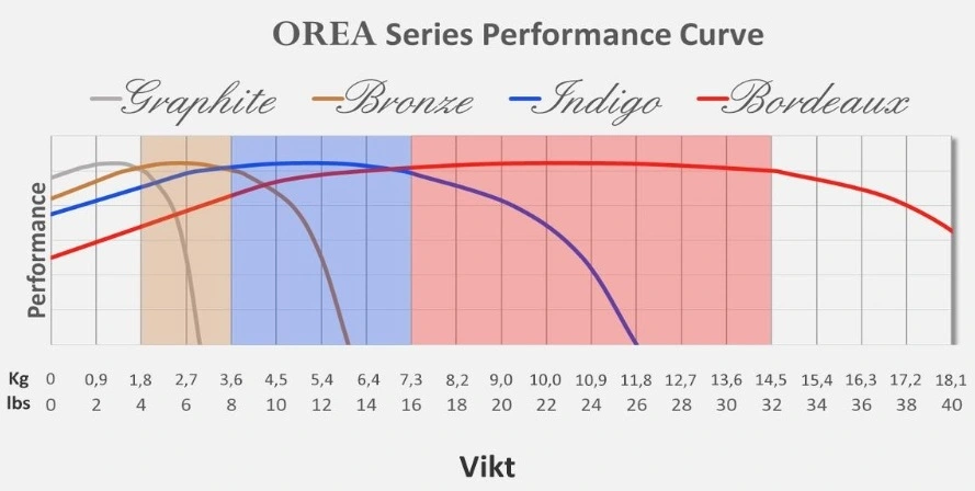 Orea serien breddas med ytterligare en modell som kort och gott heter Bronze. Bronze är något mindre än Indigo och är där med mer lämplig för lättare utrustning såsom CD Spelare, Streamers och RIAA steg. För att välja rätt Puck tar man bara apparatens vikt och delar med antalet puckar man ska använda - Normalt 3-4st. Denna vikt letar man upp i diagrammet och sen tittar man bara rakt upp i diagrammet och ser vilken puck som ligger överst och därmed ger bäst prestanda.