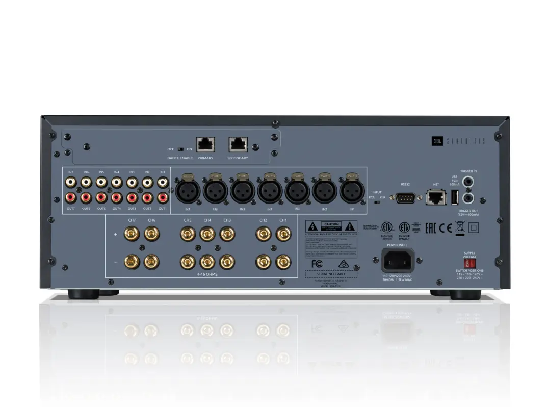 Matchande 7-kanaligt slutsteg till försteget SDP-58. JBL Synthesis SDA-7120 levererar sju kanaler med dynamisk förstärkning av klass G med modern nätverkskapacitet, ljudfilkvalitet och exceptionell flexibilitet. Med 100 watt per kanal (alla kanaler drivs), 0,002% harmonisk distorsion, balanserade och obalanserade ingångar, RS232- och IP-kontroll samt Dante™ ljudnätverk, är SDA-7120 ett utmärkt val för en bred uppsättning tillämpningar.