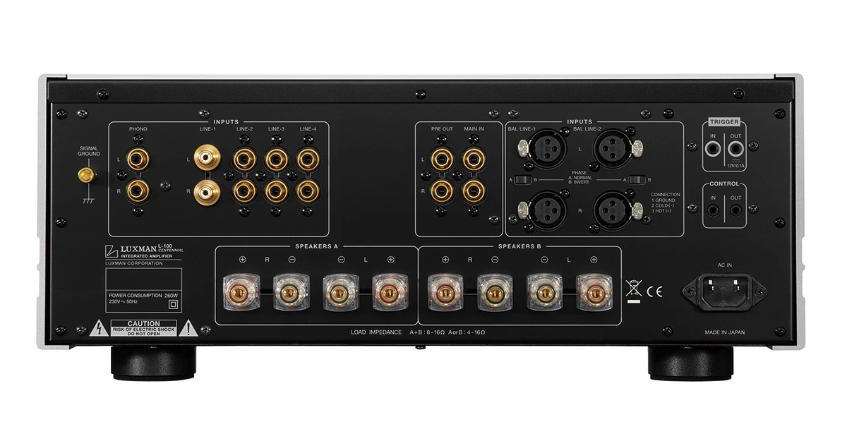 Luxman L-100 CENTENNIAL är en exklusiv, ren Class-A integrerad förstärkare skapad för att fira Luxmans 100-årsjubileum och representerar en hyllning till företagets långa tradition av högkvalitativ ljudåtergivning. L-100 CENTENNIAL bygger på Luxmans senaste LIFES 1.1 förstärkar-arkitektur som är noggrant utformad för att minimera distorsion och leverera en naturlig, rik och musikalisk ljudbild. Denna konstruktion arbetar uteslutande i ren klass A, vilket innebär att den erbjuder mjuk dynamik och detaljerad återgivning långt bortom vad traditionell klass AB-design kan prestera – med en varm, engagerande ton som särskilt tilltalar audiofiler.