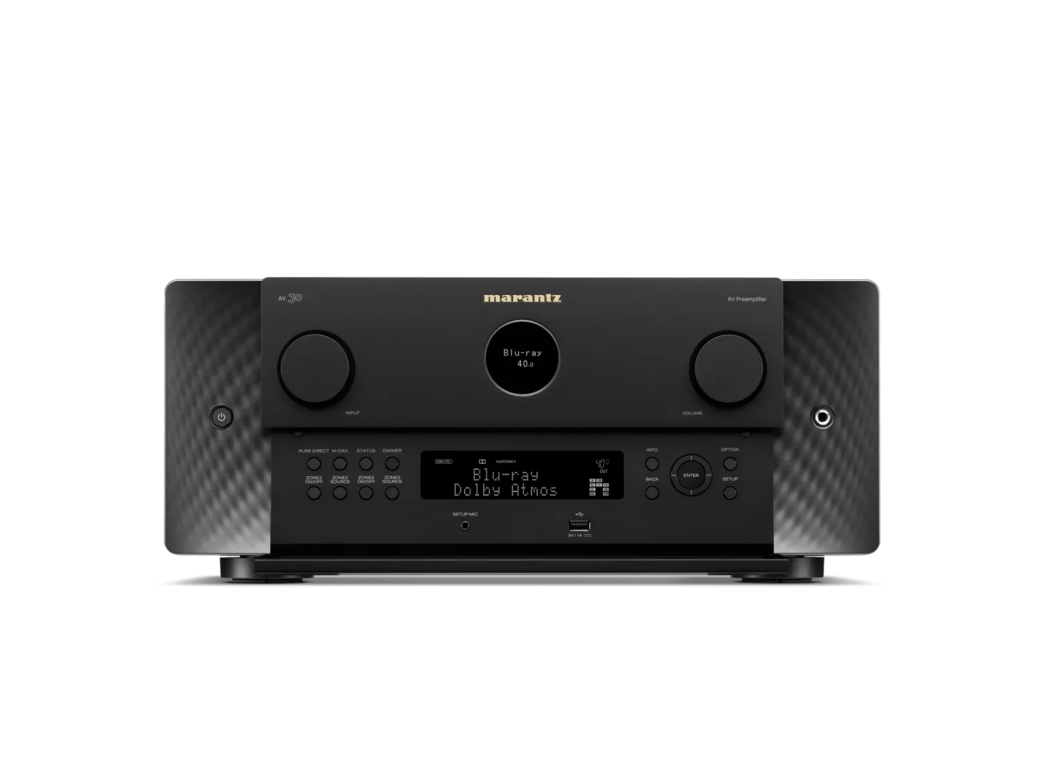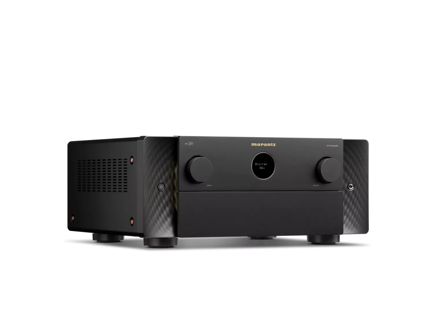 AV 30 kan bearbeta upp till 11.4 kanaler, vilket möjliggör högtalarkonfigurationer upp till 7.4.4 i Dolby Atmos. Det är mer än tillräckligt för merparten av hemmabioinstallationer – även på en ambitiös nivå. Hjärtat i processorn utgörs av en dubbelkärnig SHARC-DSP från Analog Devices, i samverkan med 32-bitars D/A-omvandlare och Marantz egna HDAM-SA2-moduler, vilket säkerställer hög upplösning, låg distorsion och musikalisk precision. Den robusta konstruktionen med kopparpläterat chassi och toroidal transformator bygger vidare på tekniska lösningar hämtade från märkets mer exklusiva modeller.