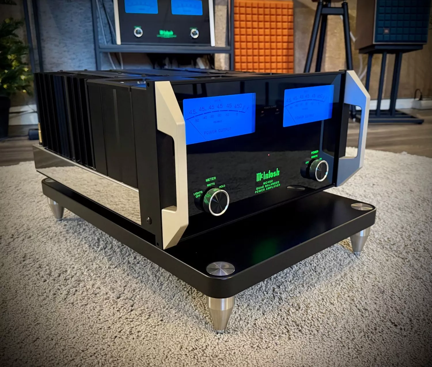 De balanserade och obalanserade utgångarna gör det enklare att dubbelförstärka eller tri-ampa dina högtalare; de kan också användas för att skicka ljudsignalen till ett sekundärt system om din förförstärkare inte har tillräckligt med utgångar, eller för att ansluta en strömförsörjd subwoofer. MC462 sitter på ett vackert polerat rostfritt stålchassi och har den tidlösa McIntosh svarta glasfronten, upplyst logotyp, kontrollrattar, aluminiumhandtag och ett par snabbreagerande blå wattmätare.