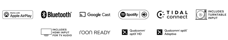 MSA5500 är kompatibel med en mängd ledande streamingteknologier och plattformar inklusive Apple® AirPlay®; Bluetooth®; Google Cast™ (tidigare Chromecast); Spotify® Connect; och TIDAL® Connect (inklusive TIDAL HiFi Lossless Quality). Ingen speciell kontrollapp eller teknisk kompetens behövs; den lättanvända MSA5500 inbjuder dig att helt enkelt strömma din musik direkt från din smarta enhet. Om du har använt ett trådlöst hemmaljudsystem av lägre kvalitet, kommer det att vara som att lyssna på dina favoritlåtar via MSA5500 som att höra dem igen för första gången.