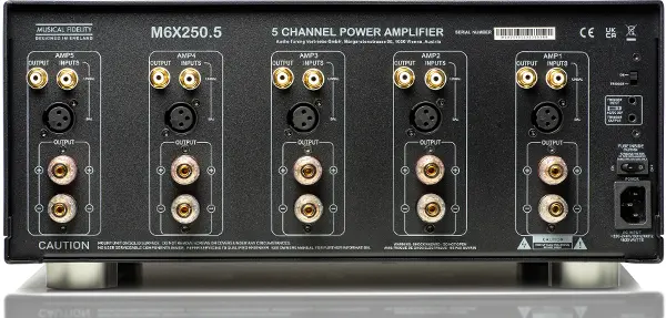 För många människor är biografen bara en plats med en stor skärm och dyra snacks - men det finns mer, som vanligtvis inte syns alls: Surround-ljudsystemet. Allt började med en enkel trehögtalarsättning på 1980-talet och utvecklades till objektbaserade system med upp till 20 högtalare. Med den nya M6x 250.5 kan du enkelt skapa ett kraftfullt 5.1 hemmabiosystem (din aktiva subwoofer är strömförsörjd separat). Du kan ansluta din förstegsförstärkare/AV-processor med antingen RCA- eller helt balanserade XLR-kablar. XLR-anslutningen förbättrar dessutom ljudkvaliteten och håller signalöverföringen ren. Musical Fidelity M6x 250.5 kommer inte bara att tillfredsställa dig med sin ljudkvalitet, utan också med högkvalitativt metallarbete och en övergripande ren look. Frampanelen, i antingen svart eller silverfinish, är en specialtillverkad fin linje aluminiumextrusion.