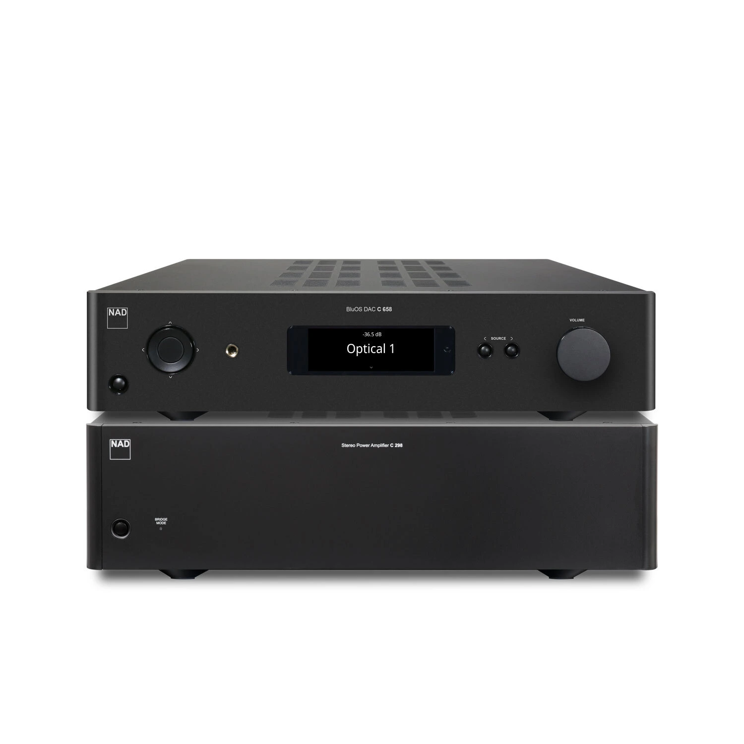NAD C 298 är en kraftfull hi‑fi‑slutsteg designad för att ge ren, dynamisk och kontrollerad effekt till dina högtalare, och utgör en utmärkt partner till förförstärkare eller streamer som exempelvis C 658 Förförstärkare i ett komplett system.