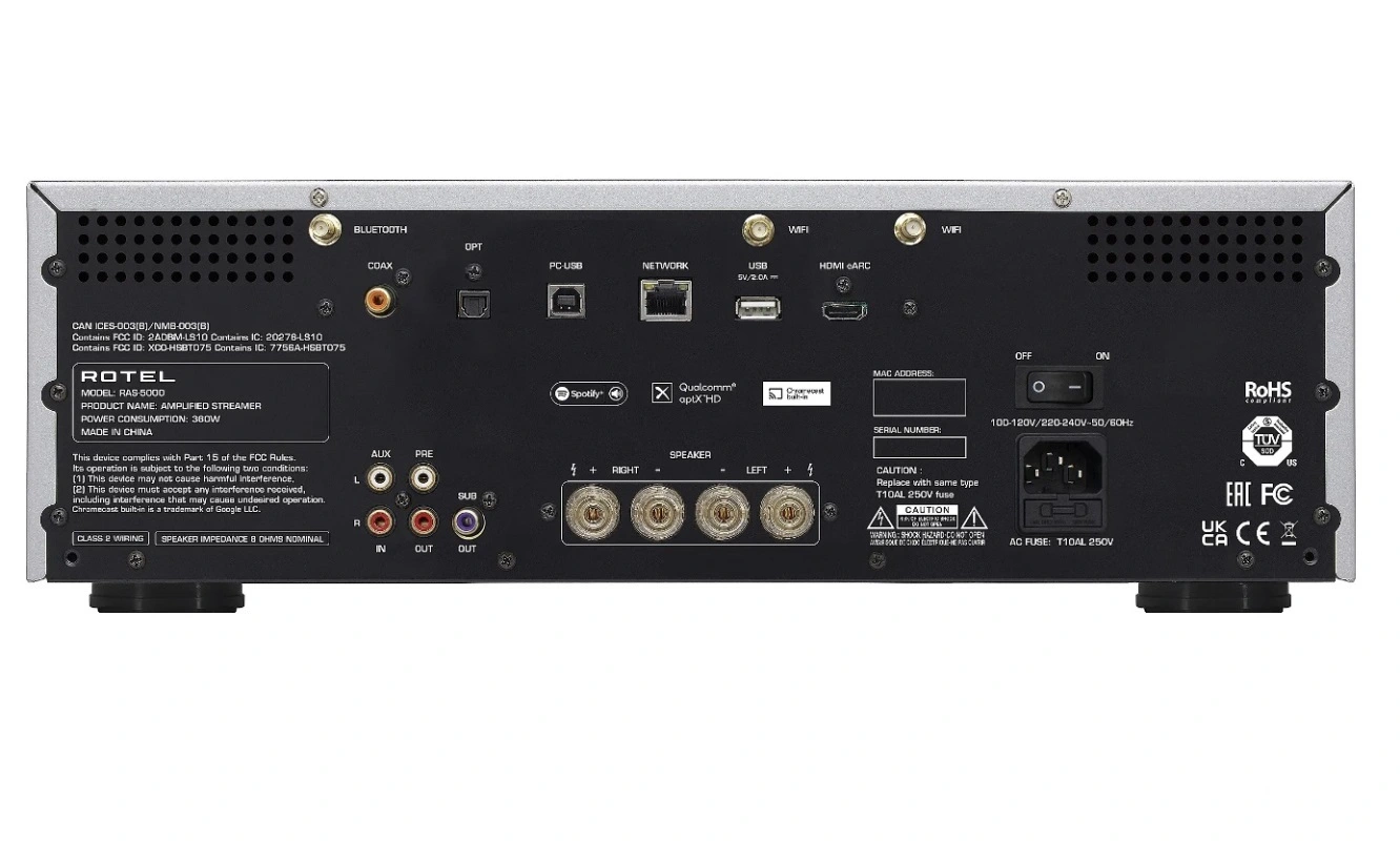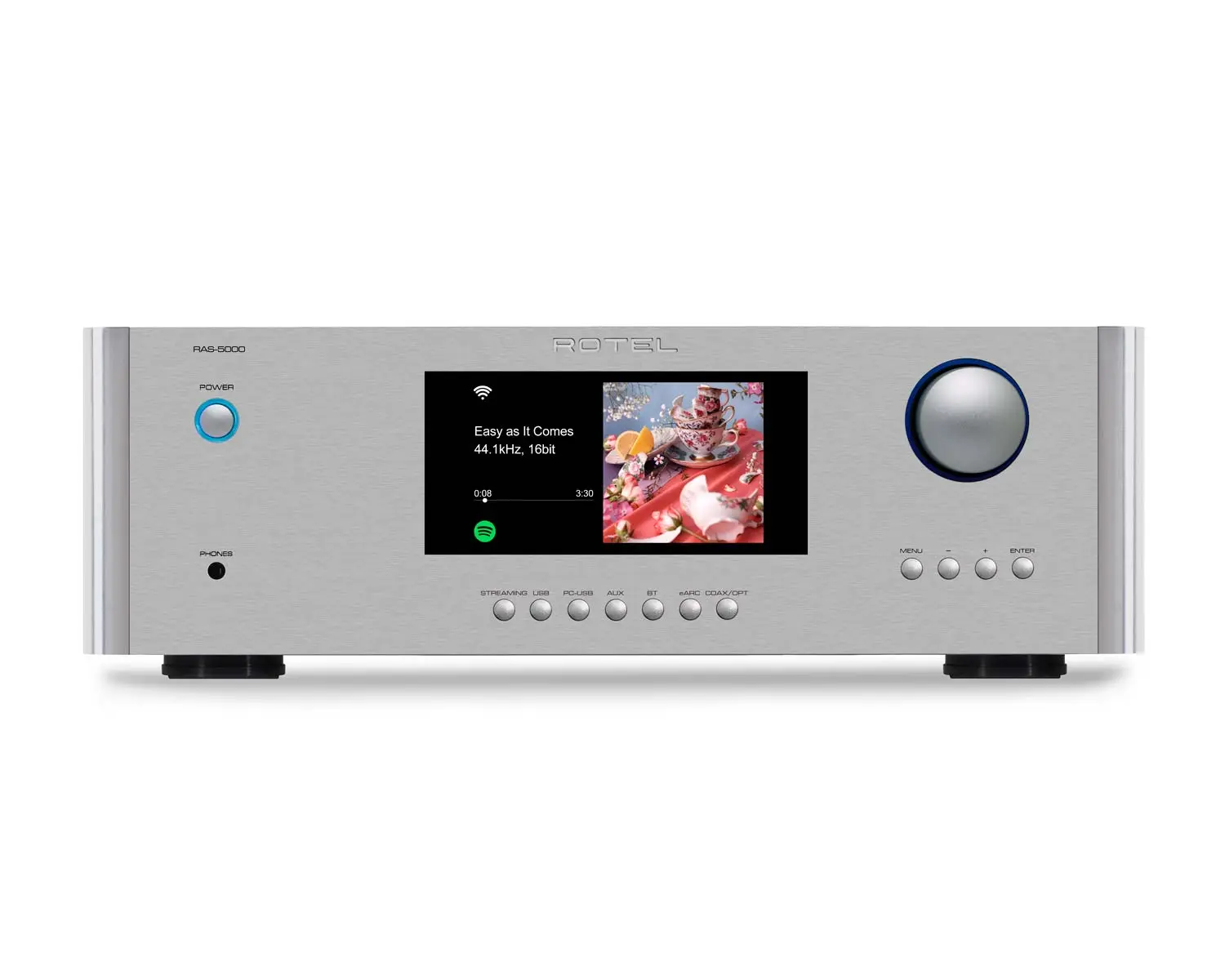 Rotels senaste streamingförstärkare RAS-5000 erbjuder hela 140 watt per kanal i klass A/B vid 8 ohm och 220 watt per kanal vid 4 ohm. Enkelhet och prestanda möts i Rotel RAS-5000, en komponent designad för att passa in i din livsstil och lyfta din underhållningsupplevelse. Den särskilt utvalda strömförsörjningen levererar ultralåg brusström till alla kritiska kretsar, med stora strömreserver för förstärkarens utgångstransistorer för att säkerställa att ljudet levereras med djup, kontrollerad basenergi med enastående trohet. RAS-5000 spelar musik av högsta kvalitet från Spotify Connect, TIDAL Connect, Airplay 2, Roon (Roon-Ready), Google Cast, Qobuz och tusentals Internetradiostationer – samtidigt som den sömlöst utvidgar anslutningsalternativen genom att integrera HDMI eARC (Audio Return Channel) -anslutning.