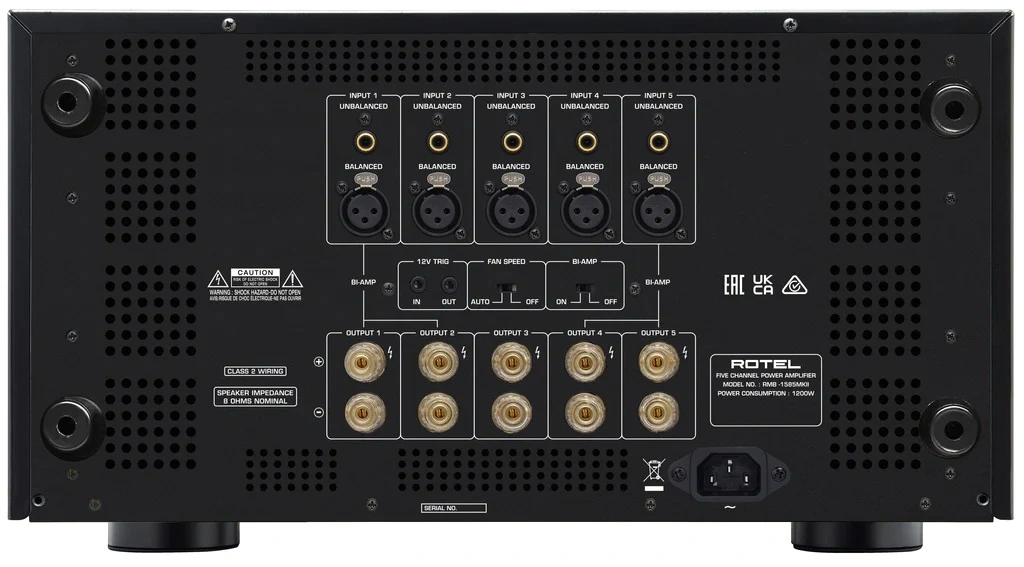 Rotels nya RMB-1585MKII är ett 5-kanalsslutsteg och fortsätter arvet av att producera högeffektiva, slutsteg för flerkanalssystem. Rotels uppdaterade MKII-designarkitektur innefattar både krets- och komponentuppgraderingar i strömförsörjningen och förstärkarstadierna för att leverera ultralåg distorsion, signalisolering och hög effektivt förpackat i ett enda flerkanaligt förstärkarchassi. RMB-1585MKII levererar enastående prestanda i 5 kanaler av Rotel Class AB-förstärkning som är specificerad till 210 watt per kanal i 8 ohm och imponerande 340 watt per kanal i 4 ohm med alla kanaler drivna.