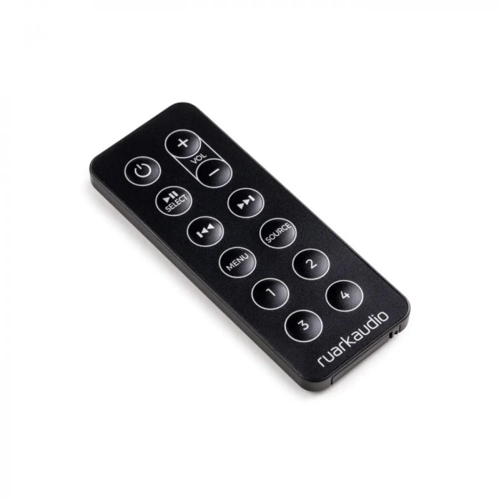 Vår kompakta fjärrkontroll är ett bekvämt tillägg till din R1 och tillåter total trådlös kontroll. Lagra och välj dina favoritradiostationer med fyra direkta förinställningsknappar, välj din källingång, kontrollera volymen, pausa, spola tillbaka eller hoppa över spår och stäng av.