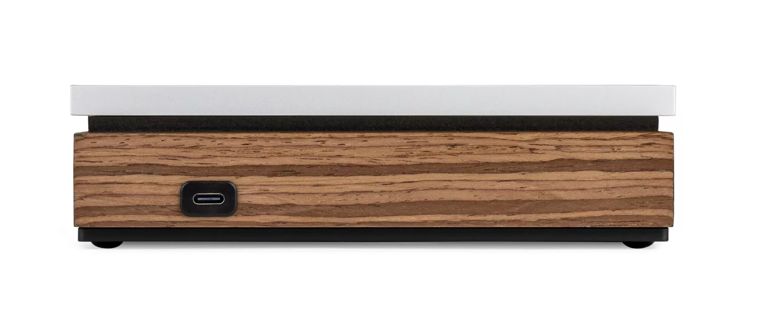 • Elegant design i anodiserad aluminium och valnöt