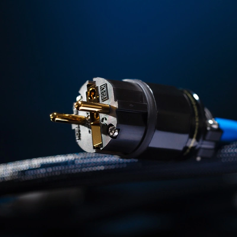 Strömkabel av Silver och Guld. Siltechs G9 Silver/Guldlegering. Koaxialkonstruktion med tvistade par. Teflon och PEEK isolering. De extremt tjocka G9 silver-guld-ledarna ger över dubbelt så mycket effekt som 680P - upp till 1200W. Siltechs dubbla Super Shielding minskar ytterligare elektriskt brus.