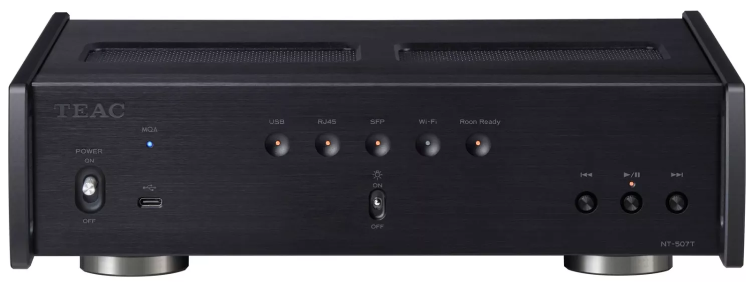 TEAC NT-507T är en dedikerad nätverksstreaming transport (utan inbyggd DAC) som lanseras för att leverera digital signal med hög renhet till ett externt DAC- eller förförstärkarsystem. Enheten är designad för audiofiler som redan har eller planerar att använda en högkvalitativ USB-DAC och vill ha optimal signalväg för streaming, NAS-lagring och USB-anslutna lagringsenheter.