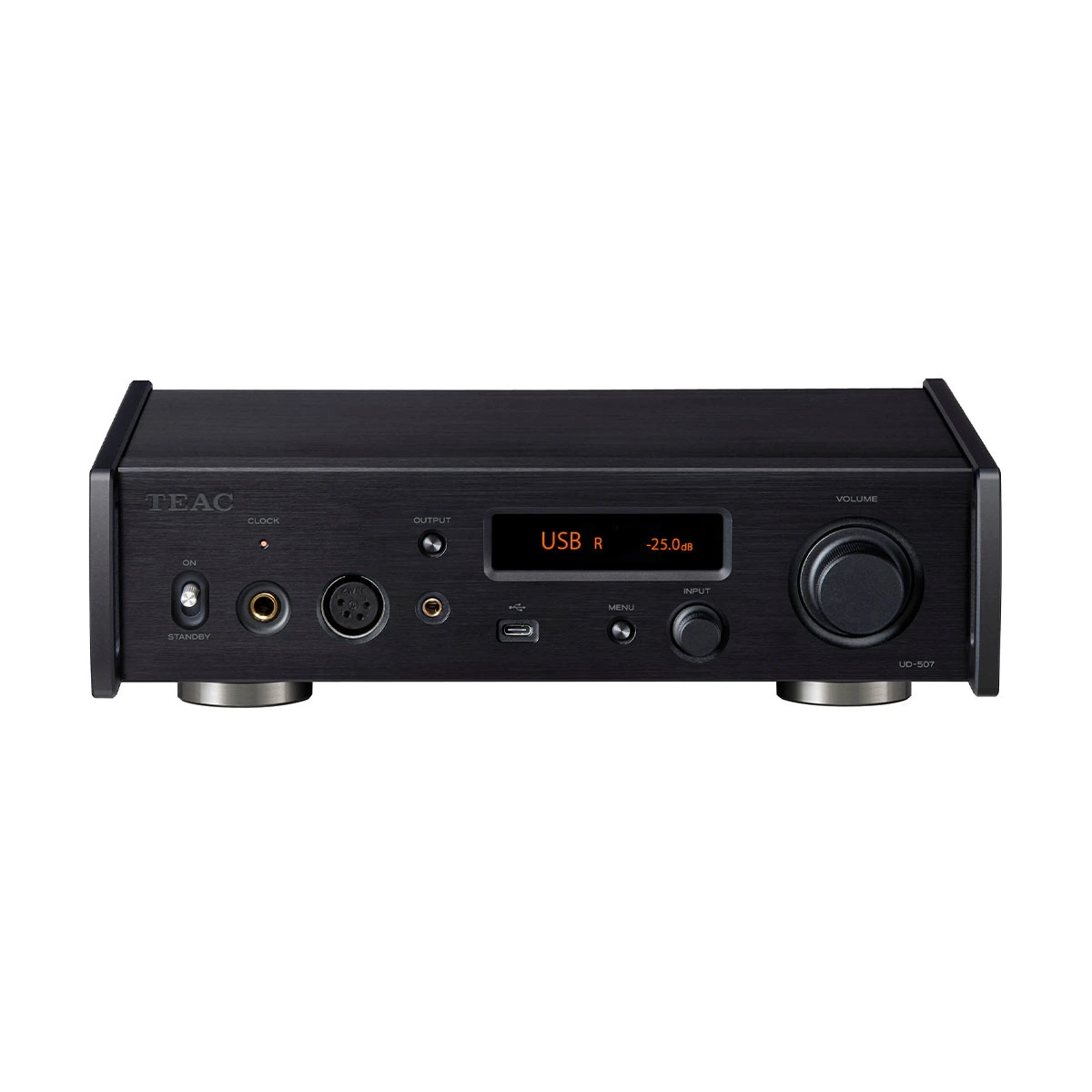 TEAC UD‑507 är en mycket kompetent USB-DAC, förförstärkare och hörlursförstärkare från japanska TEAC. Dual mono kretskonfiguration (separat vänster / höger kanal), balanserad signalhantering, separat digital/analog strömförsörjning.
