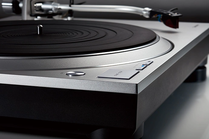 För att bekvämt kunna njuta av att spela analoga skivor har SL-1500C en inbyggd förförstärkare och kommer med en förinstallerad pickup. Du behöver inte förbereda någon av dem separat vilket gör det enkelt att koppla till ett brett utbud av ljudutrustningar. Den avskärmade strukturen hos den inbyggda förförstärkaren dämpar effekterna av brus från både strömkällan och omgivningen. Den är också utrustad med en brytare som stänger av LINE-utgången när den inte används. Skivspelaren har utformats för att helt och hållet stänga ute negativa effekter på PHONO-utgången. Den dedikerade strömkällan för PHONO-utgången är isolerad från strömkällan för LINE-utgången och har utformats för att prioritera ljudkvaliteten genom att minimera ledningarna för PHONO-signalen. De isolerade kontakterna förhindrar också ledningsfel.