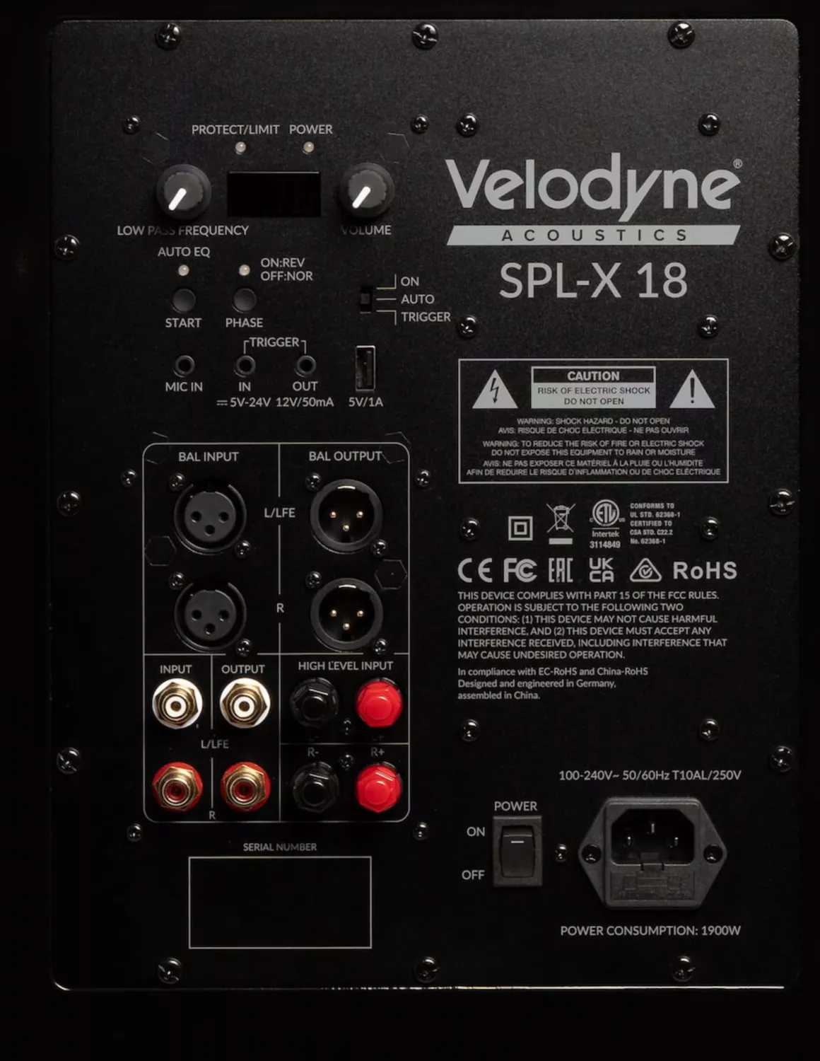 SPL-X18 är den största modellen i Velodynes SPL-X-serie som lanserades 2025. Det är en aktiv subwoofer i high-end-klassen, konstruerad för att leverera mycket kraftfull, kontrollerad och djup bas till både hemmabio och krävande high-fidelity-system. Serien bygger vidare på velodynes tidigare SPL Ultra och den legendariska DD-serien och för in ny DSP-teknik, nya element och digital rumsanpassning.